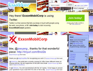Hace unos meses trascendió la noticia de que una joven se dió de alta en Twitter con el nombre de usuario http://twitter.com/ExxonMobilCorp cuando ya le seguían unas 300 personas pensando que se trataba de Exxon Mobil fue demandada por utilizar logotipo e imágenes con propiedad intelectual de la petrolera. Ahora esa cuenta ya no está operativa.